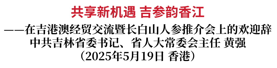 在这繁花似锦、惠风和畅的美好时节,很高兴同香港、澳门的新老朋友,相聚在美丽的维港之滨,共赴这场跨越山海的“人参之约”。我谨代表中共吉林省委、吉林省人民政府,向各位嘉宾、各位朋友和中外媒体记者们,表示热烈欢迎!对香港特区政府和有关方面长期以来的支持帮助,表示衷心感谢!